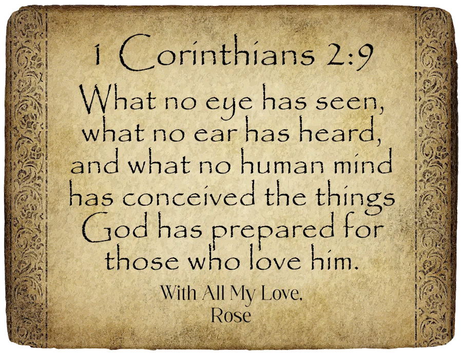 1 Corinthians 2:9 What no eye has seen, what no ear has heard, and what no human mind has conceived the things God has prepared for those who love him.