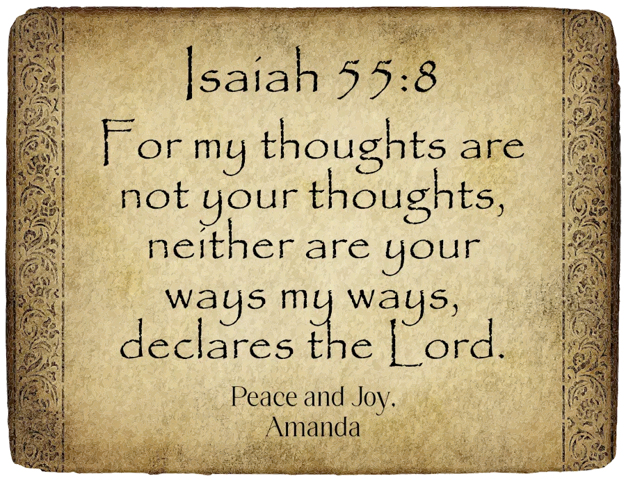 Isaiah 55:8 For my thoughts are not your thoughts, neither are your ways my ways, declares the Lord.