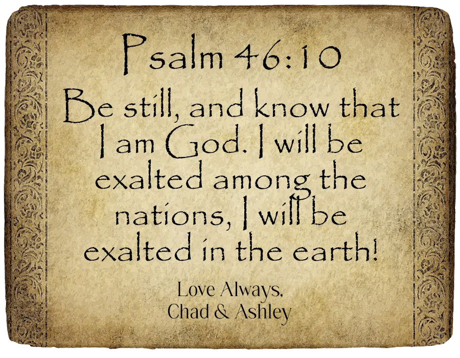 Psalm 46:10 Be still, and know that I am God. I will be exalted among the nations, I will be exalted in the earth!