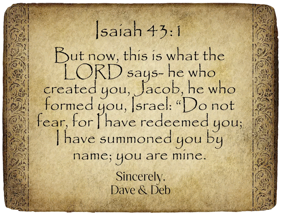 Isaiah 43:1 But now, this is what the LORD says- he who created you, Jacob, he who formed you, Israel: “Do not fear, for I have redeemed you; I have summoned you by name; you are mine.